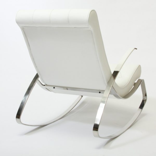 - Barcelona-City Modern Design Rocking Lounge Chair has been designed to be a stylish yet relaxing chaise lounge with unique modern design. This elegant chair has a solid stainless steel frame serving as a base for extra comfortable soft leather cushion. The seat cushions and the backrest are all one piece containing high density polyurethane foam. Bonded leather was used for upholstering the cushion’s frame. This rocker chair can be used in both residential and commercial applications and would look marvelous in any indoor setting including the living area, waiting room, lounge, office, library, den, etc. This lounge chair doubles as a rocker while maintaining the beauty of modern design. Barcelona-City would add style and is a wonderful addition to any indoor space.